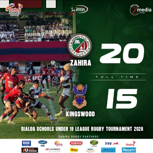 Zahira College began its Dialog Schools Under-19 League Rugby Tournament 2026 campaign on a winning note, as they secured a hard-fought 20 – 15 victory over Kingswood College Kandy, at Nittawela Rugby Grounds on 25th April 2026.