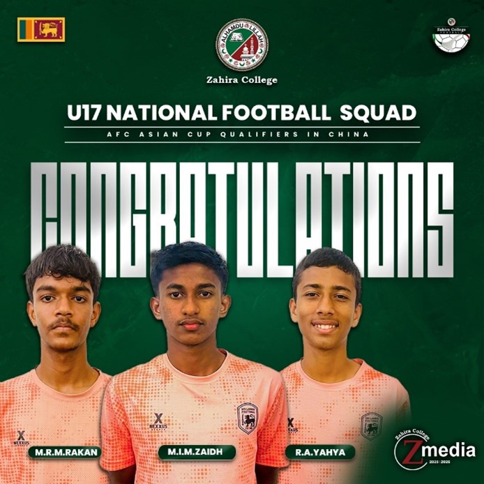 We extend our heartfelt congratulations to these talented young players and wish them every success as they showcase their skills, uphold the spirit of Zahira College, and make our nation proud.